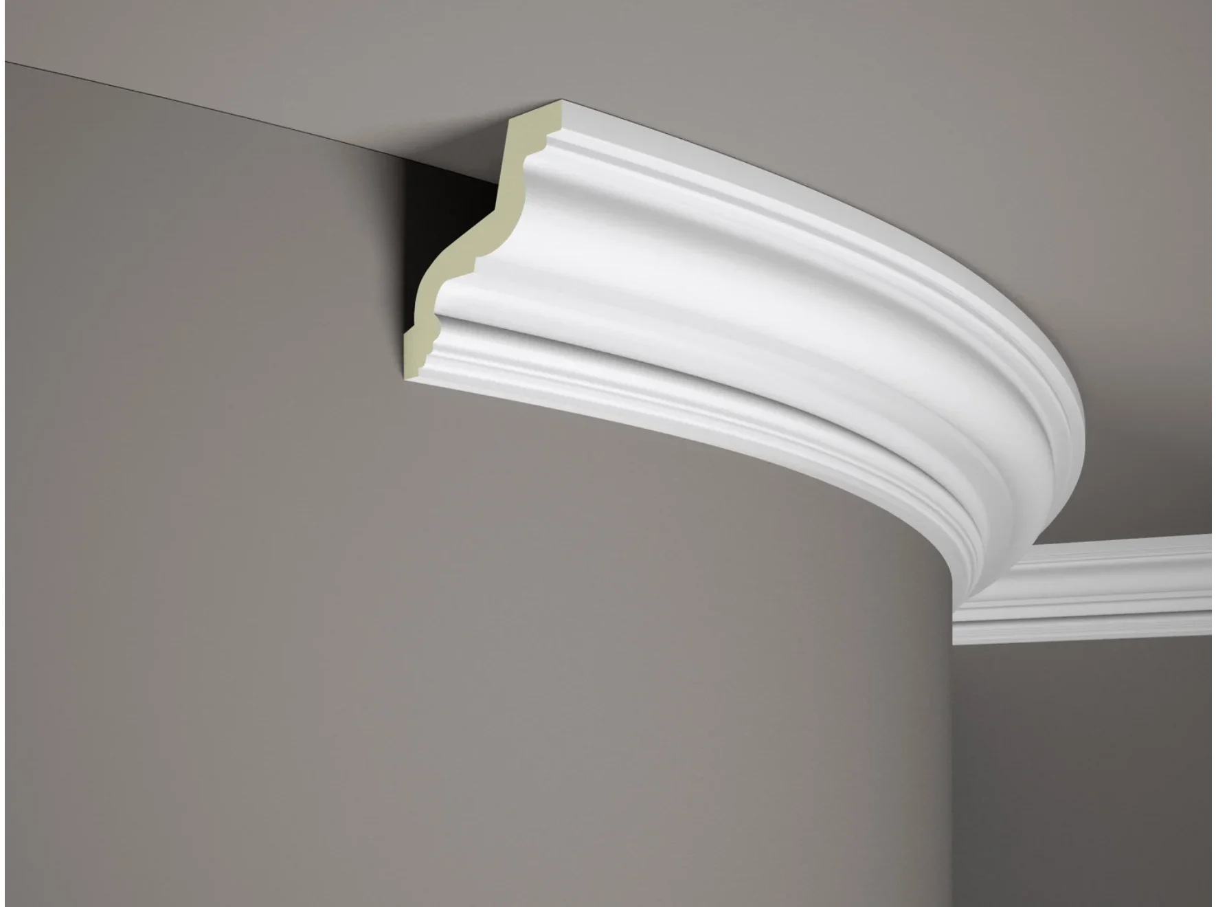 Cornișa flexibilă MDB118F este un profil decorativ înalt, cu un design clasic. Are o suprafață în relief, care accentuează perfect aranjamentele retro sau contrastează eficient cu cele moderne. Prin urmare, profilul flexibil MDB118F poate fi montat la joncțiunea pereților și tavanului în spațiile rezidențiale, dar și în cele aparținând unor birouri și spații comerciale. În plus, acest profile se caracterizează printr-o rezistență extraordinară la factorii externi, cum ar fi umiditatea, lumina soarelui sau deteriorările mecanice minore. Profilul are proprietăți FLEX, ceea ce înseamnă că este dedicat instalării pe suprafețe curbe, cum ar fi coloane sau profile. Îl puteți îndoi liber în forma dorită, fără a vă face griji că se va rupe. Profilul trebuie vopsit după fixare. Vopseaua fără solvenți, în orice culoare, va funcționa în acest scop.