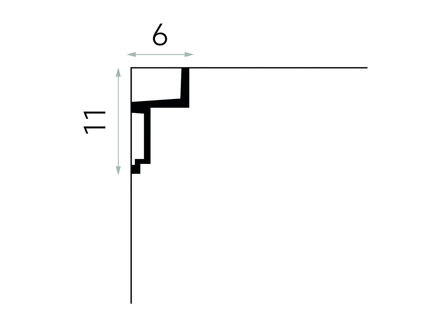 Cornișa MDB115 este un model cu un design unic, creat în spiritul artei moderne a designului interior. Profilul decorativ va fi perfect pentru acoperirea erorilor de instalare la conectarea planului tavanului cu peretele. Datorită spațiului special din spatele produsului, profilul este, de asemenea, o soluție eficientă pentru mascarea firelor electrice sau a cablurilor esențiale din gospodărie. Materialul ProFoam® din care este fabricat MDB115 este ușor, ceea ce face ca instalarea benzii să fie simplă. Cornișa este rezistentă la umiditate și reflectă eficient lumina soarelui de la suprafață. În contact cu apa și radiațiile UV, nu se deformează și nu se îngălbenește, păstrându-și forma perfectă pe tot parcursul utilizării. MDB115 a fost acoperită cu vopsea de grund, ceea ce facilitează aplicarea pe suprafață cu culoarea dorită. Recomandăm utilizarea unei vopsele pe bază de apă.
