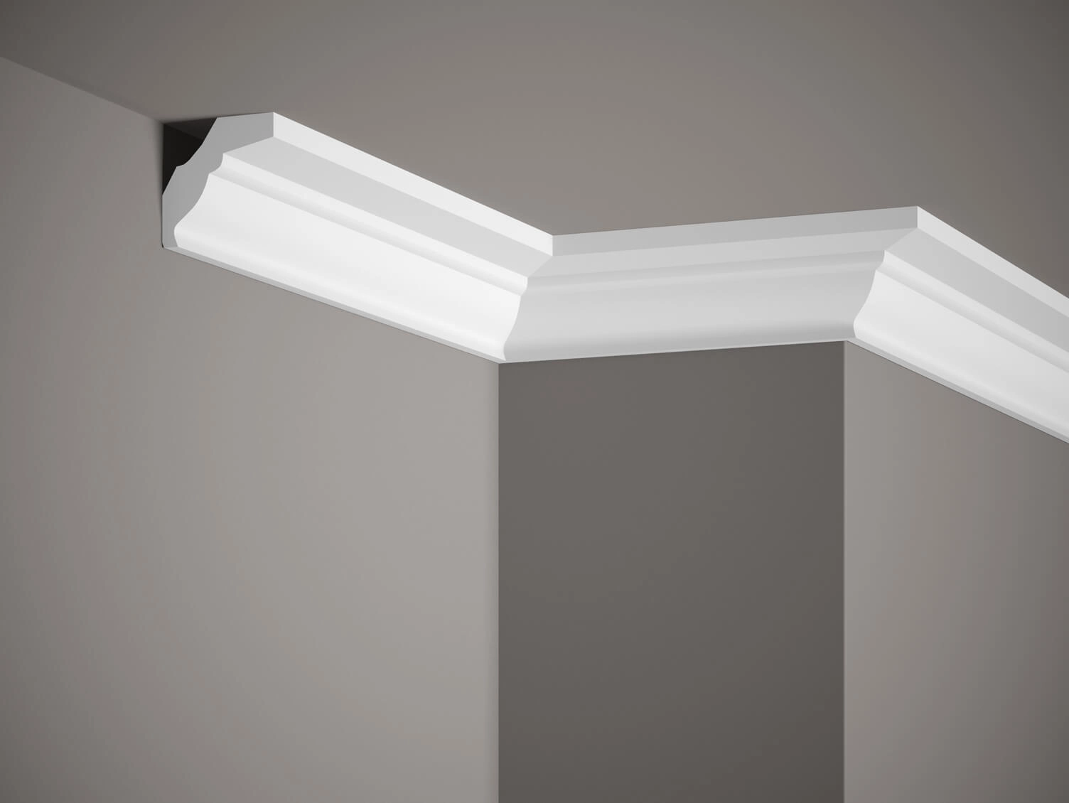 Cornișa MDB174 este un profil de dimensiuni mici, decorat cu o canelură subtilă. Este un element decorativ remarcabil, care va adăuga eleganță interiorului. Materialul utilizat în producerea MDB174 este poliuretanul special ProFoam® - un material ușor și rezistent la factorii externi. Profilul este rezistent la apă și la lumina intensă a soarelui. Chiar și după o perioadă lungă de utilizare, își păstrează aspectul perfect. Profilul se caracterizează prin greutate redusă și este ușor de instalat. Cantitatea potrivită de adeziv aplicată pe margini este suficientă pentru a asigura o instalare permanentă și stabilă. MDB174 a fost acoperit cu un strat de grund de nivelare, care facilitează vopsirea și crește rezistența culorii. Recomandăm utilizarea unei vopsele pe bază de apă pentru vopsire.
