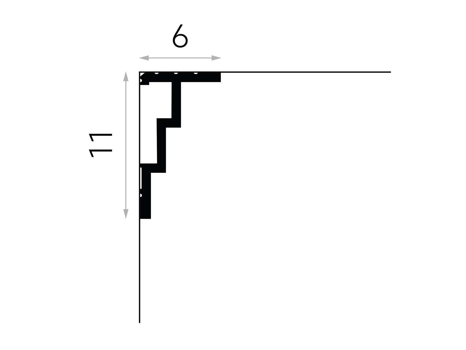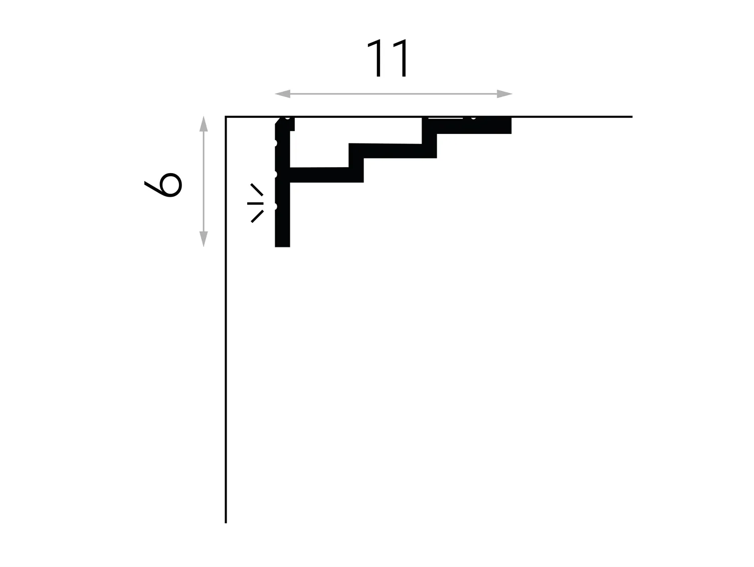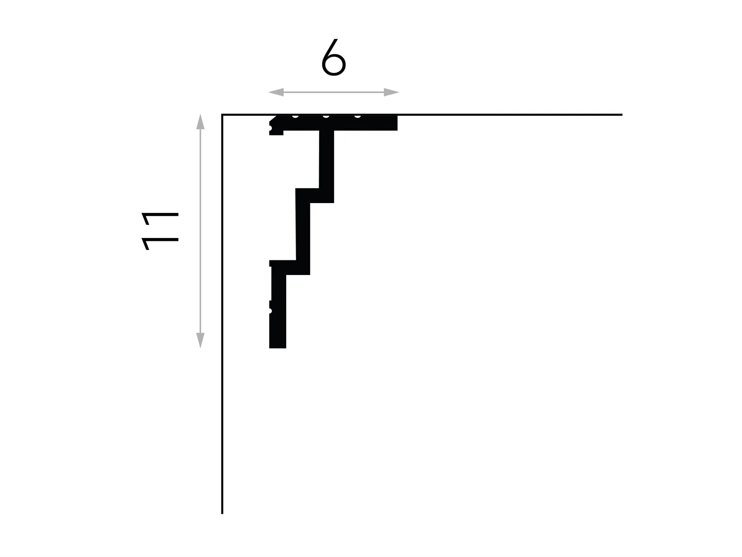 Profilul QL025 este răspunsul la dorințele de design interior ale arhitecților și designerilor de interior, care au nevoie de produse de înaltă calitate, cu o formă originală și diverse aplicații pentru a realiza designuri moderne. Cornișa poate fi utilizată ca profil clasic pentru tavan, profil iluminat cu bandă LED sau chiar ca șină pentru perdea. Profilul este acoperit cu un grund mat, nivelator, care facilitează aplicarea straturilor ulterioare de vopsea. Instalarea cornișei este incredibil de simplă, iar în magazinul Mardom Decor puteți găsi toate accesoriile necesare pentru instalare, cum ar fi adeziv, chit sau un dispozitiv de tăiere. Cornișa este fabricată din PolyForce®, material care are cei mai înalți parametri tehnici în ceea ce privește rezistența la umiditate, deteriorare mecanică sau îngălbenire sub influența razelor UV.